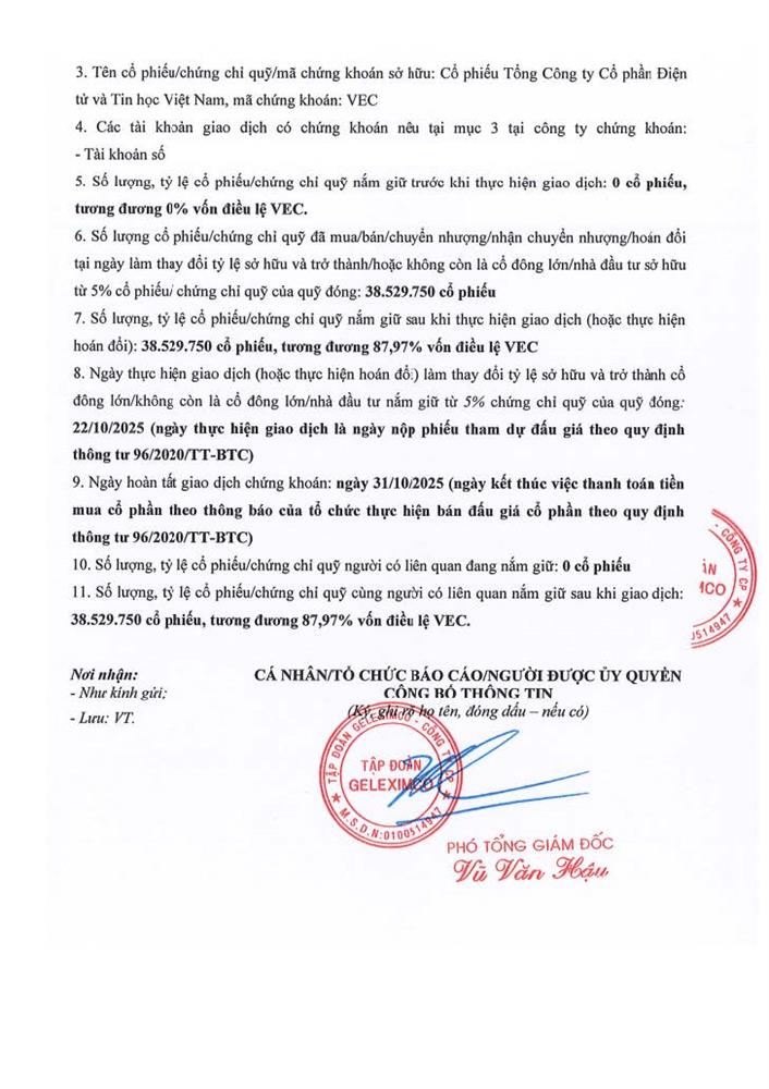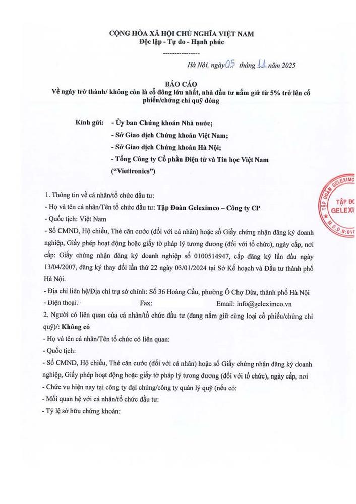 Miễn nhiệm chức vụ Tổng Giám đốc Viettronics đối với Ông Vũ Hải Vĩnh kể từ ngày 10/11/2025