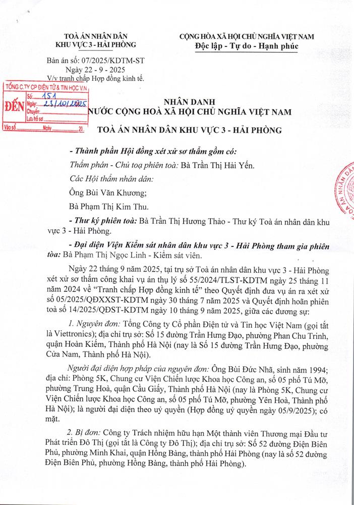 Tòa án nhân dân KV3 Hải Phòng kết luận về việc tranh chấp hợp đồng kinh tế