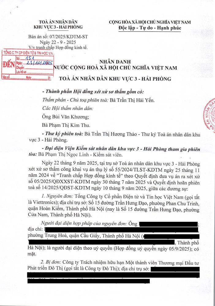 • Tòa án nhân dân KV3 Hải Phòng kết luận về việc tranh chấp hợp đồng kinh tế